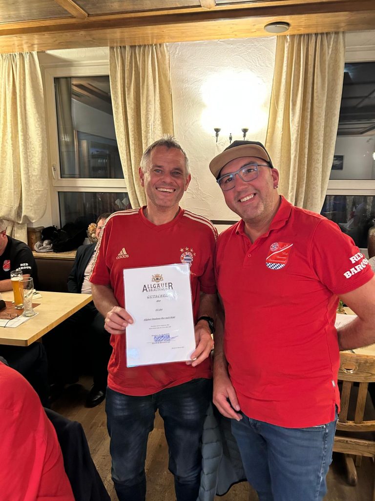 Seine jährliche Jahreshauptversammlung hielt der FC-Bayern-München-Fanclub Red Baroons Dietmannsried kürzlich im Antica di Marcello in Dietmannsried ab. Stattliche 300 Mitglieder kann der seit über 30 Jahren bestehende Fanclub inzwischen vorweisen. Wie alle zwei Jahre stand auch die Wahl eines neuen Präsidiums an. Zuvor gab es einen durchweg positiven Bericht zu den Finanzen des Fanclubs, die Red Baroons stehen sehr gesund da. Der erste Bürgermeister Werner Endres fungierte im Anschluss als Wahlleiter, und das alte Präsidium wurde komplett einstimmig wie folgt wiedergeählt: