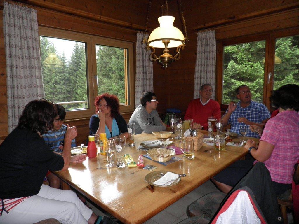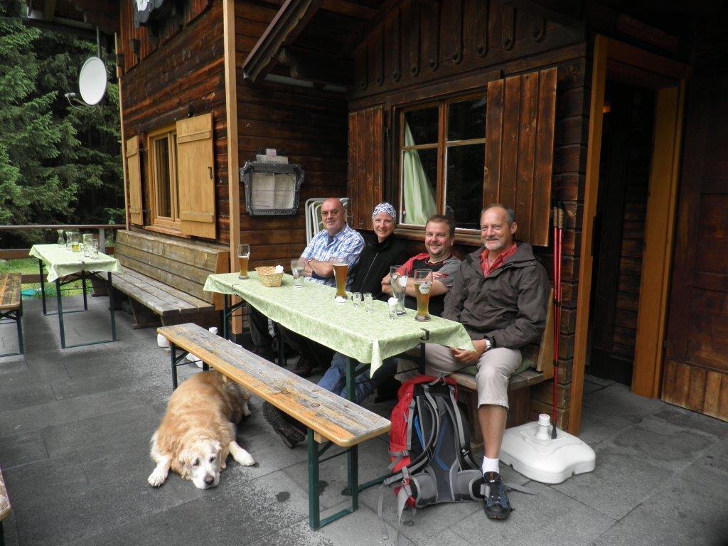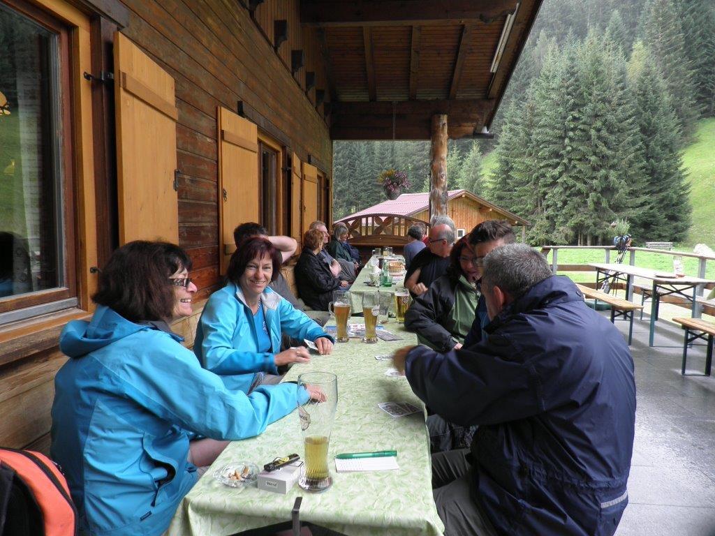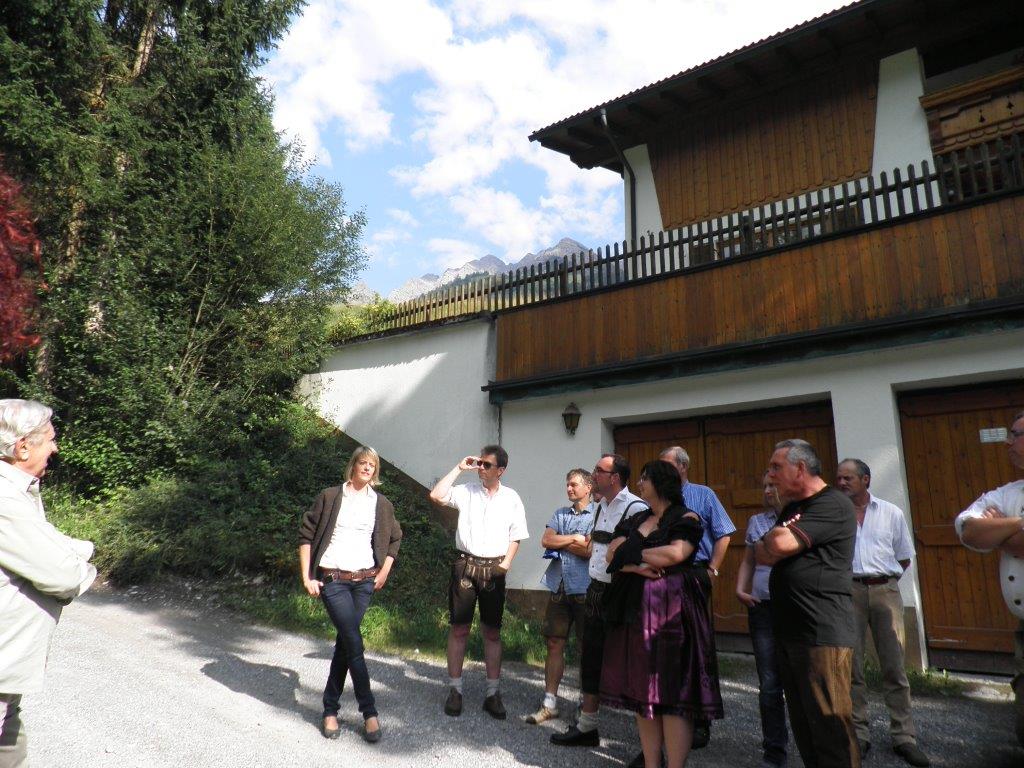 Nach dem Frühstück erwanderten wir um 10 Uhr den Hausberg Wase in einer ausgeschriebenen Marschzeit von 50 Minuten bergauf, wo uns die Hüttenwirtin Irene mit tollen Brotzeiten und erfrischenden Getränken erwartete. Nichtwanderer oder Fusskranke konnten für EU 10,– p.P. rauf und runter transferiert werden. Für 13.30 Uhr war der Retourmarsch angesetzt, was wie selbst-verständlich klappte, so dass im Alpenblick ein Erfrischungszeitraum blieb. Dann ging es gegen um 15 Uhr nach Elbigenalb in den Nachbarort, wo dann die Gruppe zweigeteilt wurde: