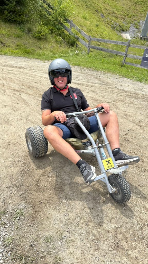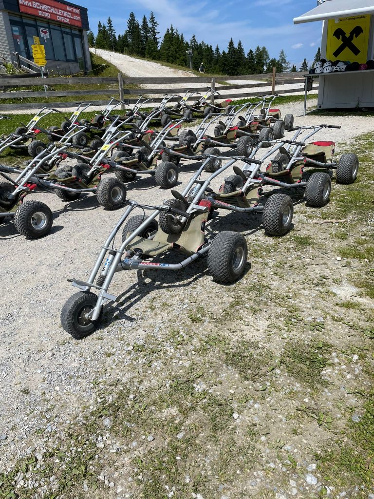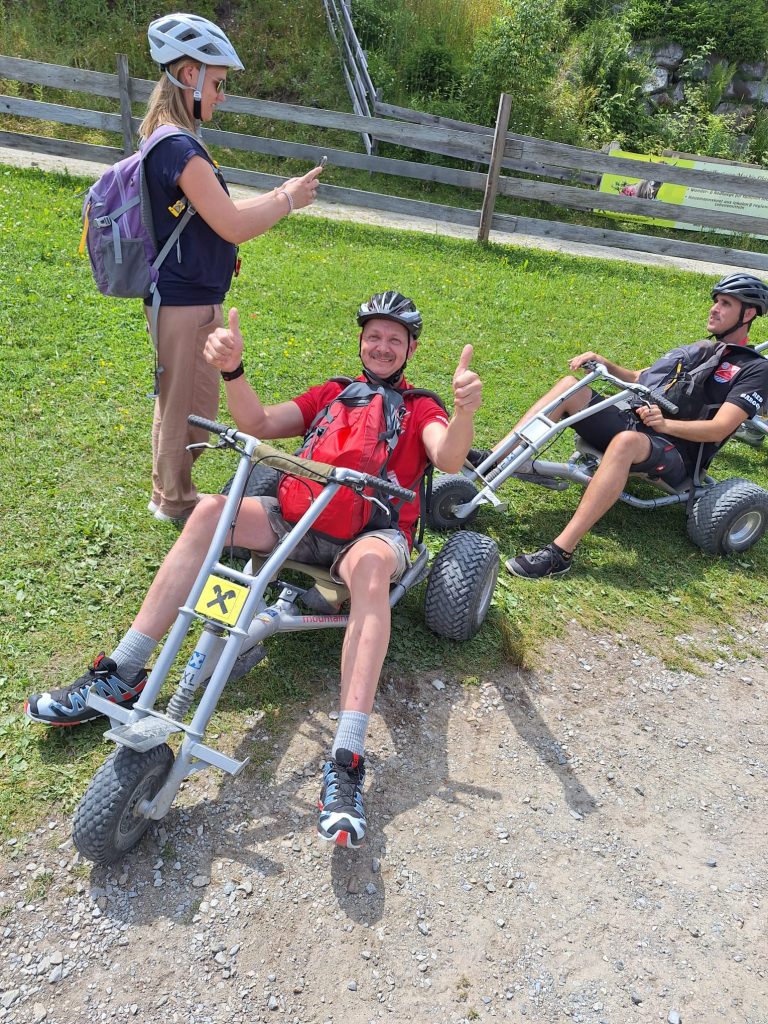 Nachdem das Hirn war ausgebrannt, wurde es für einige von uns so richtig rasant. Wir mussten ja zurück ins Tal und das Mountainkart war erste Wahl. Am Start sagte mir noch ein roter Bruder. Im Tal da warten auf uns die Boxenluder. Jetzt wollten wir natürlich nicht mehr lange warten,