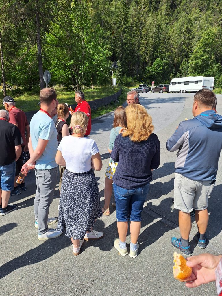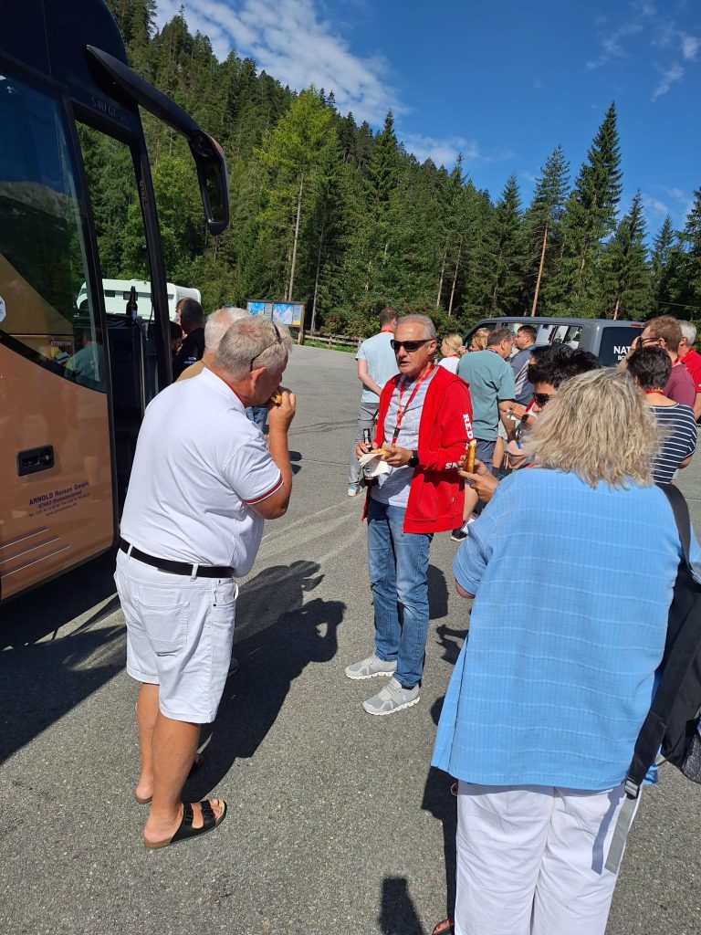 Nach gefühlten endlosen Stunden Fahrt. Hat uns allen der Hunger und der Durst geplagt. Jetzt war es endlich Zeit für eine Pause, und an dem Parkplatz Zugspitzblick, gab es eine Leberkäs Jause. So sorgten Luggi und sein Team für echtes Wohlbehagen. Drum möchte ich hier mal Danke sagen.